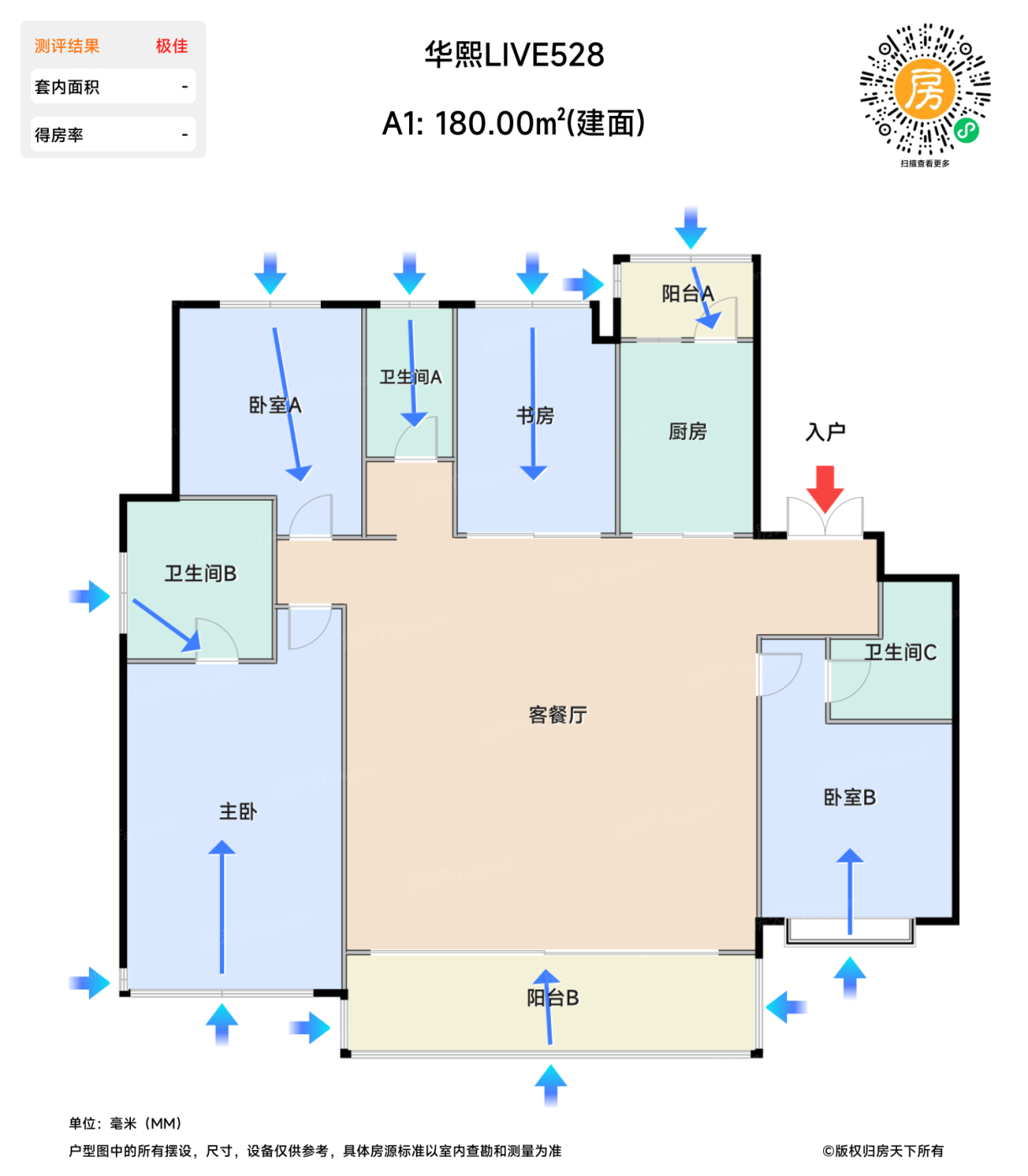 | 客餐厅 | 64.4 | 11 | 8.9 | 极佳 |