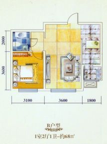 室内空间对应面积。