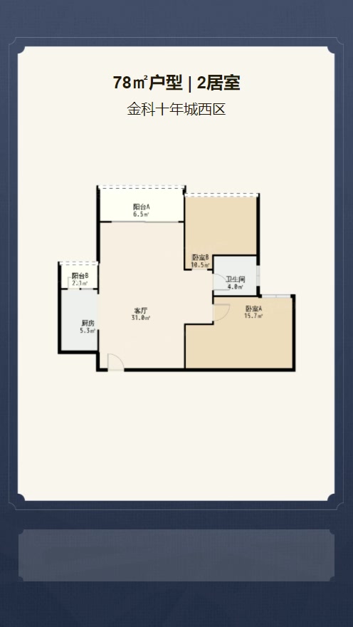 售完金科十年城西区2居室户型图 | 建面:78㎡ | 朝向:朝南