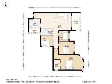 *施工有误差,交付时无法与户型图一致,仅供参考,最终以开发商合同为准
