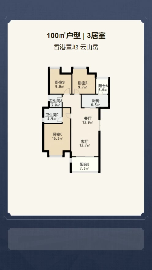 售完A户型 | 建面:100㎡ | 朝向:
