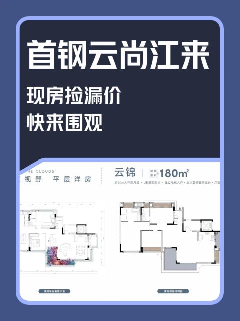 查看全文首钢云尚江来现房销售实景呈现,在售洋房和别墅,其中: 洋房建面约180㎡,建面均价约20000元/㎡,总价约350万左右,另在售建面约290㎡合院,建面约484-690㎡临江联排,具体一房一价。 详询售楼处: