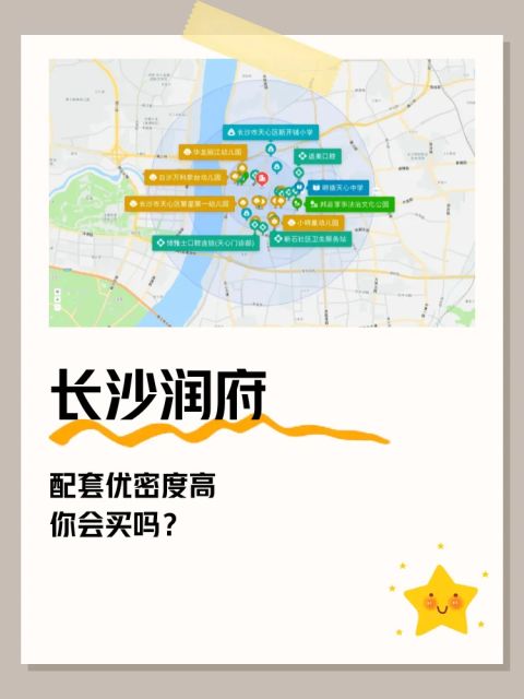 直线3km范围内有85个幼儿园。直线3km范围内有15个小学,如博才洋湖小学、湖南师大附中双语海棠小学、新天小学、长沙市天心区新开铺小学、红卫小学等。直线3km范围内有4个中学:明德天心中学、中南大学第二附属中学、长郡外国语实验中学、明德中学。