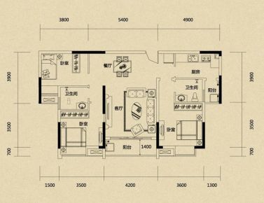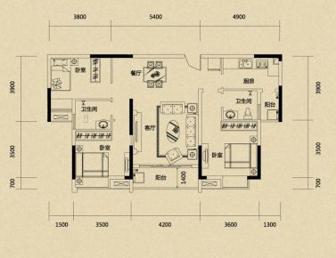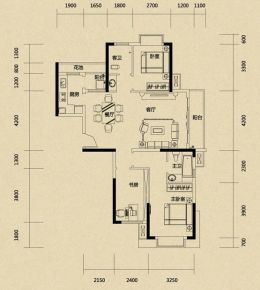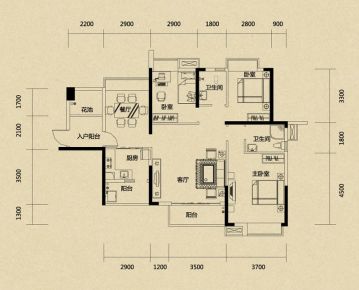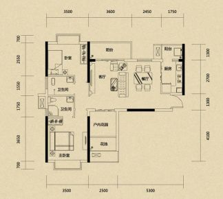 室内空间对应面积。