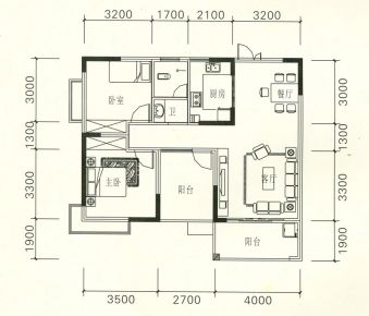 室内空间对应面积。