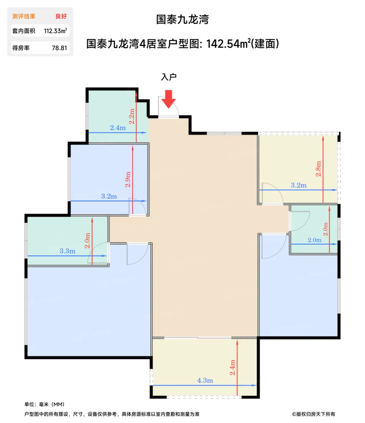 | 卧室C | 12.1 | 3.2 | 4.2 | 良好 |