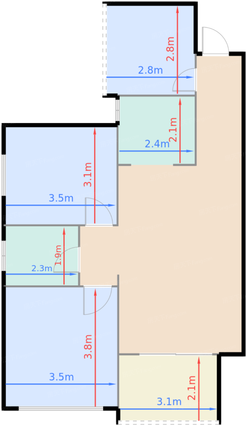 | 卧室B | 10.9 | 3.5 | 3.1 | 良好 |