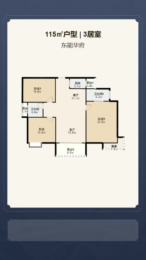 卧室B 22.8㎡ | 面宽4.2m | 进深5.5m