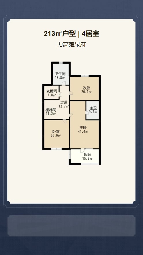 在售下叠213平户型 | 建面:213㎡ | 朝向: