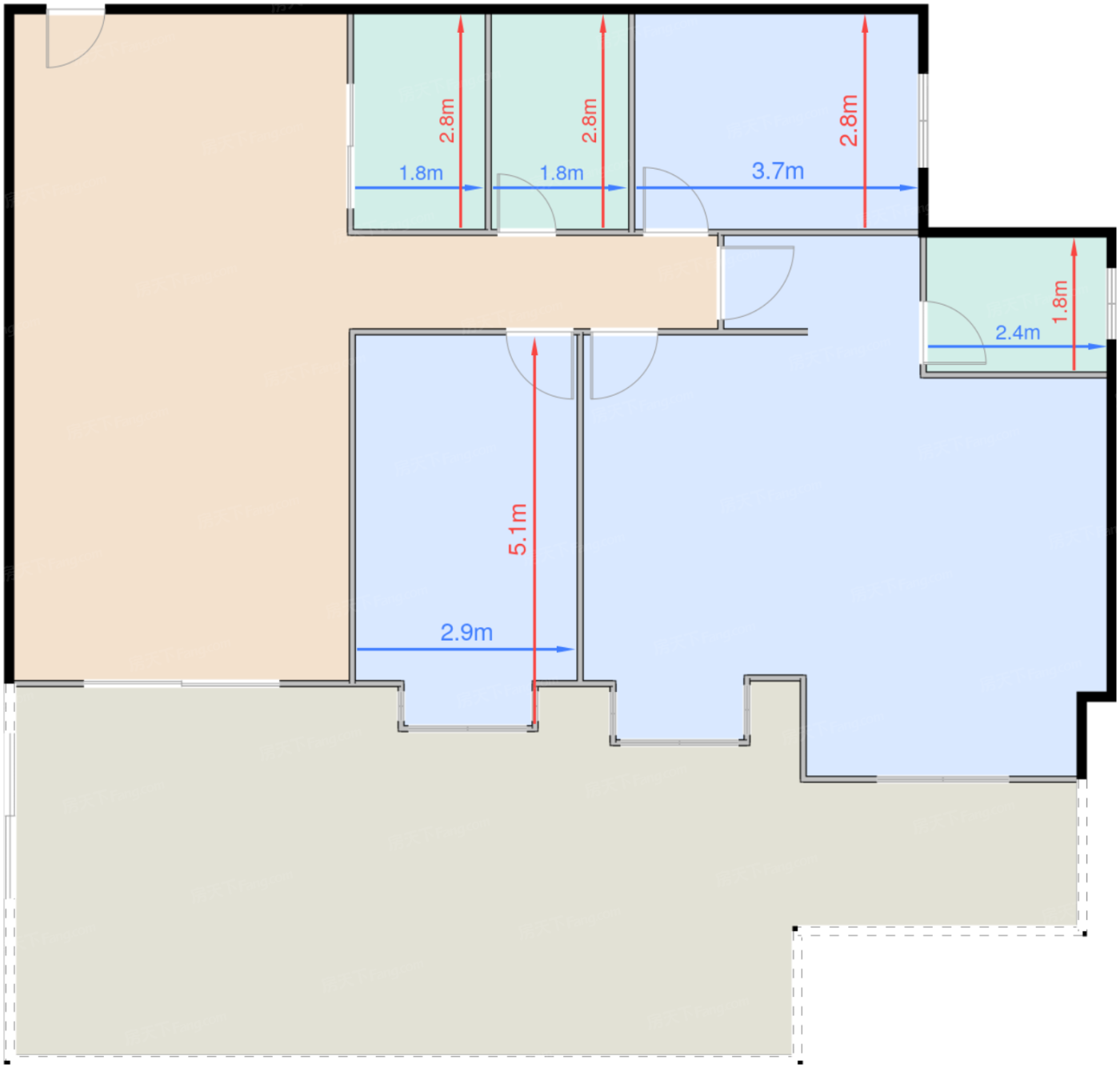 卧室C 10.1㎡ | 面宽3.7m | 进深2.8m