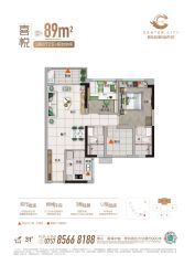主推户型是 89.00㎡(2室2厅1卫),106.00㎡(3室2厅1卫)现在地皮比较贵,开发商都不舍得浪费一点空间吧,绿化率一般