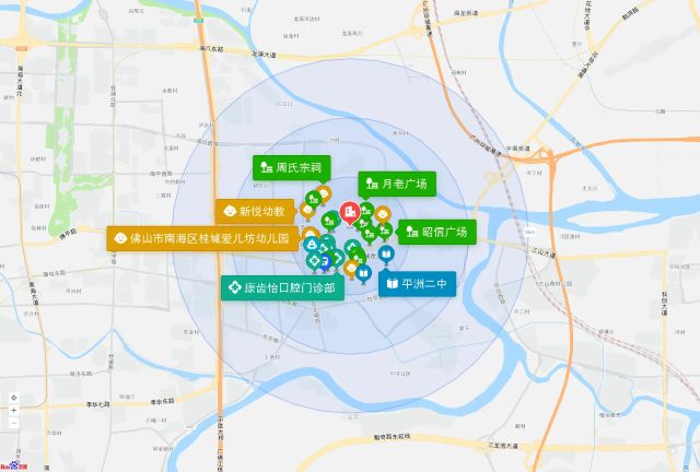 直线3km范围内有44个幼儿园。直线3km范围内有16个小学,如映月第二小学、夏东小学、映月第七小学(夏南一校区)、灯湖第四小学、南海中心小学等。直线3km范围内有7个中学,如南海第一中学、桂城中学、南海实验中学(映月校区)、平洲二中、南海实验中学(桂外小学部)等。