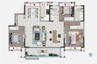 总共4个户型,面积从118-121㎡不等,想一步到位就选择大户型吧。看小区配套设施啥的,都还可以,感觉日后升值潜力比较大。