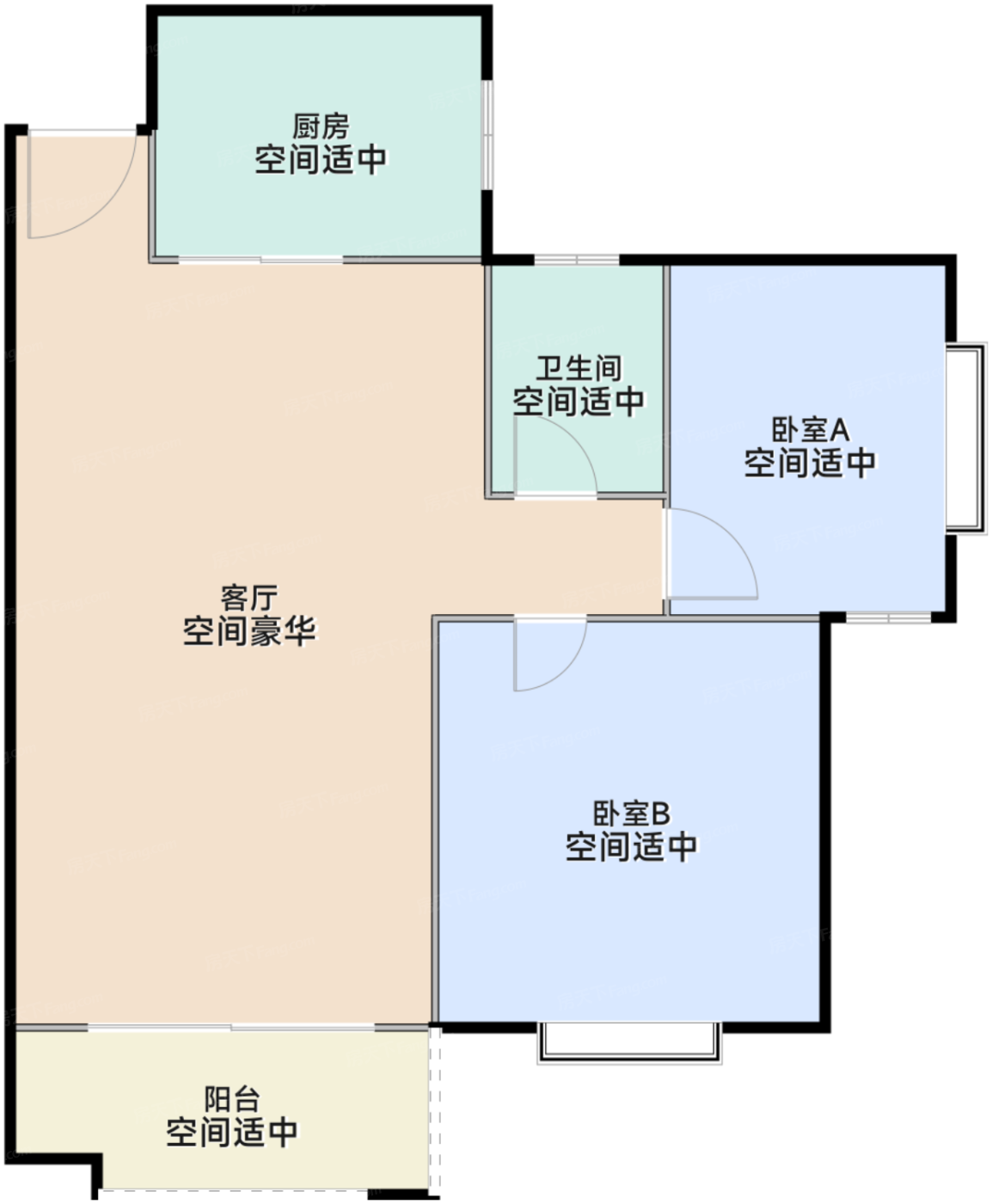 - 空间适中卧室B虽小,却设计得十分用心,每一寸空间都被充分利用,为您打造出一个既舒适又温馨的休憩角落。