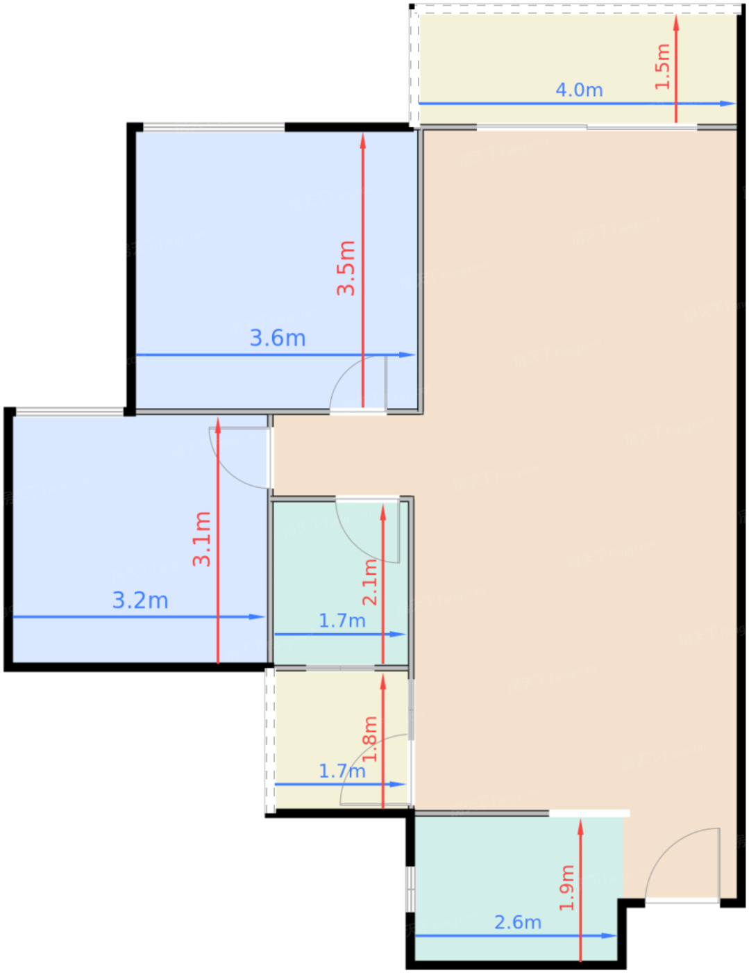 厨房 5㎡ | 面宽2.6m | 进深1.9m