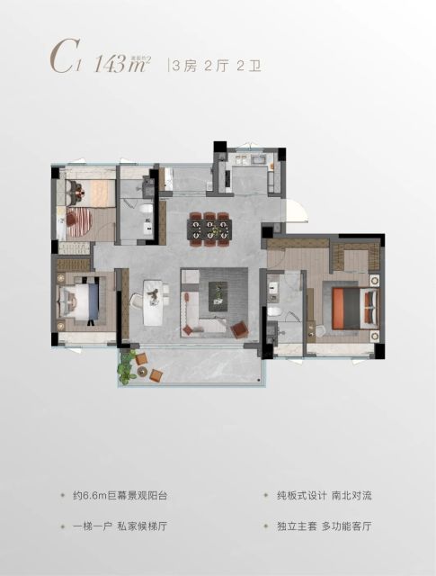 129㎡这个户型我也很喜欢,应该是他们主推的吧。物业管理好,环境也好,小区品质不错。