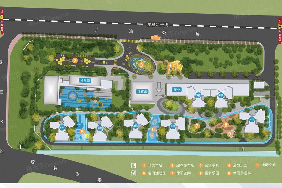 周边直线3km范围内有2个地铁站(朱村、山田),轨道交通发达,距离最近的地铁站是朱村。周边直线1km内有5个公交站周边公共交通较为便捷。