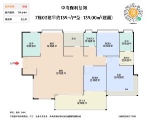 中海保利朗阅加推2栋的140平户型,另外130平四房总价580万左右、140平总价650万左右,带精装交付。