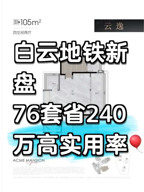 查看全文越秀·云悦主推包括88平四房(1个户型)和105平四房(2个户型),带装修45000元/平,使用率130%。项目下楼就是18号线延长线,距离800米就是地铁3号线。