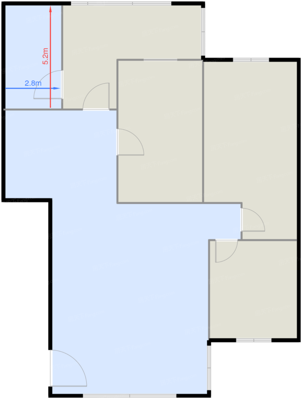 卧室B 13.1㎡ | 面宽2.8m | 进深5.2m