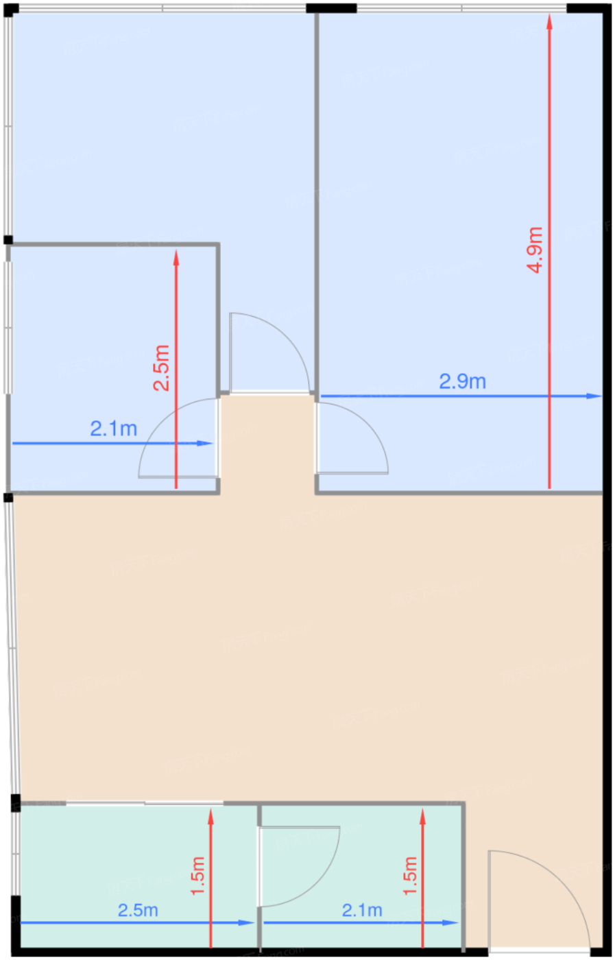 卧室A 14.9㎡ | 面宽2.1m | 进深2.5m