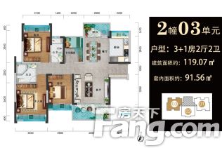 - 4室2厅2卫 在售119.07㎡92.87万元/套
