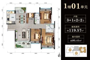 - 4室2厅2卫 在售119.57㎡93.26万元/套