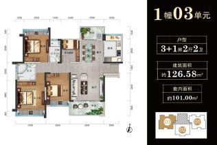 - 3室2厅2卫 在售126.95㎡99.02万元/套