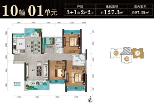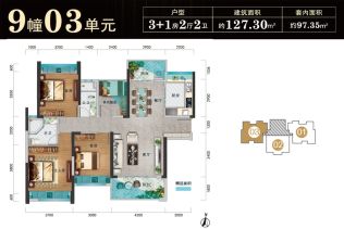 - 3室2厅2卫 在售127.30㎡99.29万元/套