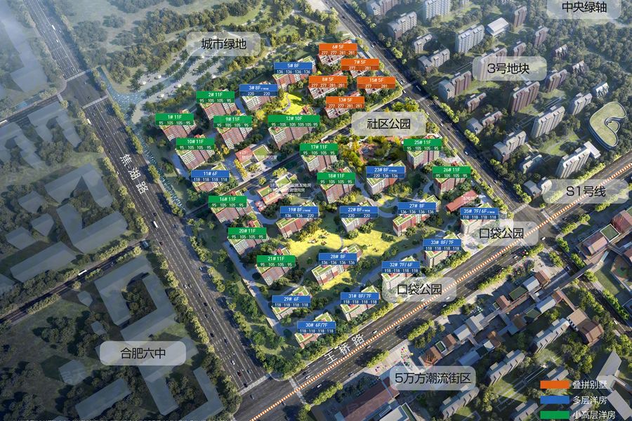 查看全文华侨城国际小镇·水岸8号致电售楼部电话:0551-6603 8977(发送详细地址) 华侨城空港国际小镇位于合肥经开北区新桥科创示范核心区,直线距新桥机场约6公里,产业与人口导入由华侨城与经开区平台联合推进。住宅分多期开发,当前主力在售“宝教湾”地块,容积率1.6-1.8,小高层+洋房组合全装修交付,户型119-160㎡,得房率约80%,外立面铝板+大玻璃,社区内配建中央水岸、滨水步道、邻里中心及2.0低密洋房组团,整体品质在空港板块属于头部水平。 2025年12月小高层装修均价约1.28万/㎡,洋房装修均价1.43万/㎡,与周边淮南寿县产权楼盘(高层5600-6000元/㎡)相比价差明显,但贵在“合肥经开产权”与央企品牌;二手房挂牌价1.0-1.1万/㎡,近半年环比持平,同比小幅下探7%,价格已提前挤泡沫,泡沫程度低。交通方面,地铁S1号线(空港-滨湖)已列入2025年通车计划,设宝教湾站约400 m,未来可30分达政务;自驾经团肥路、机场高速30分到经开明珠广场,通勤便利性将随轨道开通显著提升。