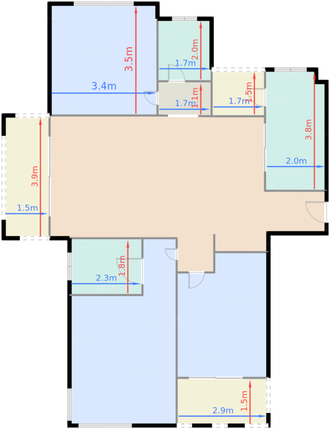 卫生间B 3.5㎡ | 面宽1.7m | 进深2m
