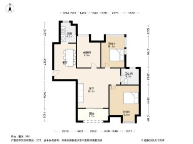 卫生间A 4.3㎡ | 面宽2.3m | 进深1.8m
