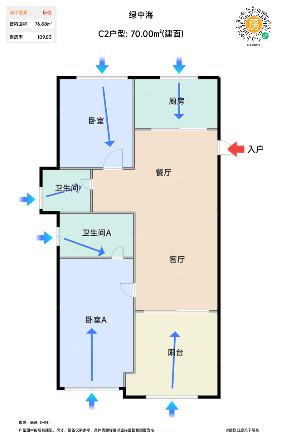 在售C2户型 | 建面:70㎡ | 朝向:
