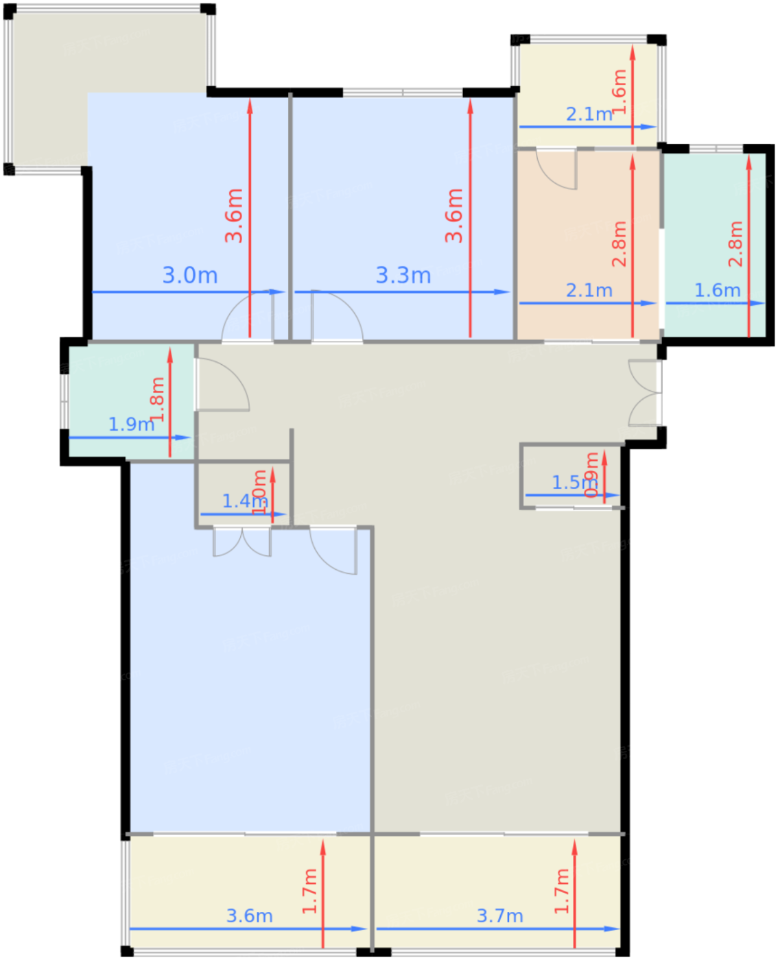 | 阳台A | 6.3 | 3.6 | 1.7 | 良好 |