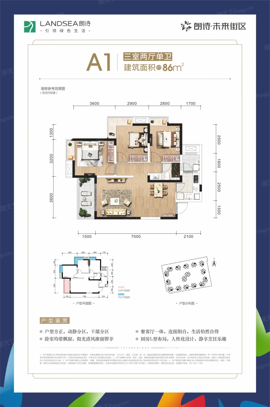 9.4分户型齐全,主打户型方正,动静分离,三开间朝南,观景飘窗,干湿分离,明厨,双阳台三居。朗诗·未来街区户型主要有86.0平-102.0平的户型方正,动静分离,三开间朝南,观景飘窗,干湿分离,明厨,双阳台的三居和120.0平-122.0平的全明格局,户型方正,观景落地窗,明厨明卫,双阳台的四居