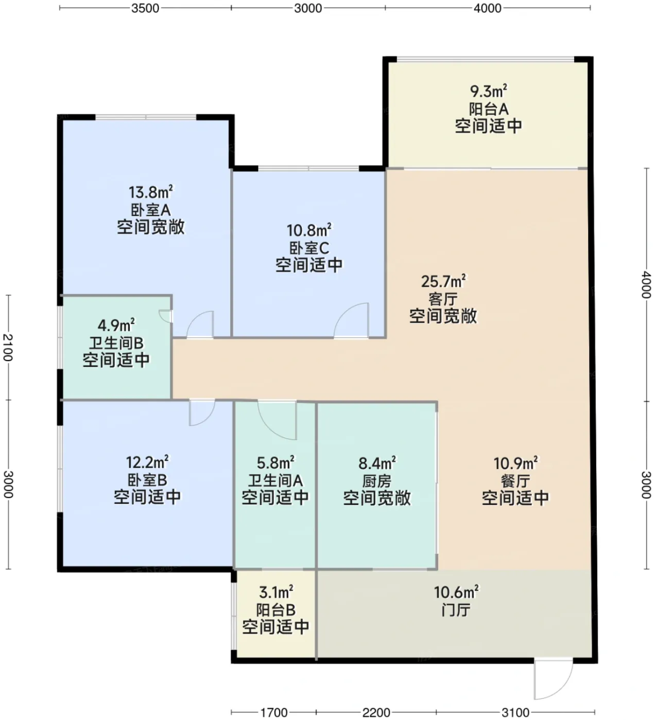 9.6分户型齐全,主打全明格局,户型方正三居。瀚城绿洲户型主要有91.0平-104.0平的全明格局,户型方正的三居、76.0平-85.0平的全明格局,户型方正的二居和104.0平-106.0平的四居