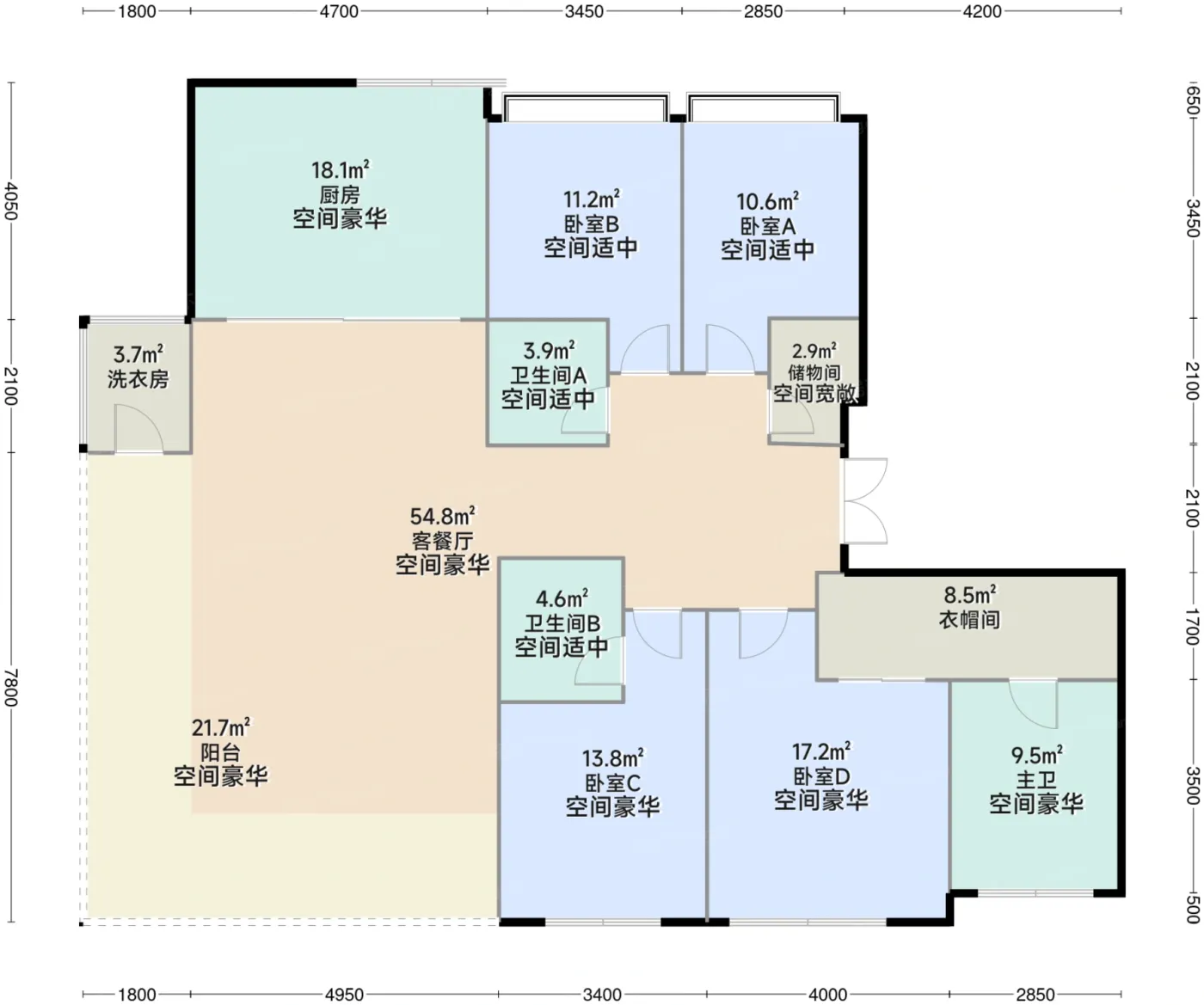 9.4分户型齐全,主打南北通透,主卧套间,大面宽阳台四居。招商时代公园 天樾境户型主要有153.0平-236.0平的南北通透,主卧套间,大面宽阳台的四居和142.0平的户型方正,客厅朝南,主卧朝南,大面宽阳台的三居