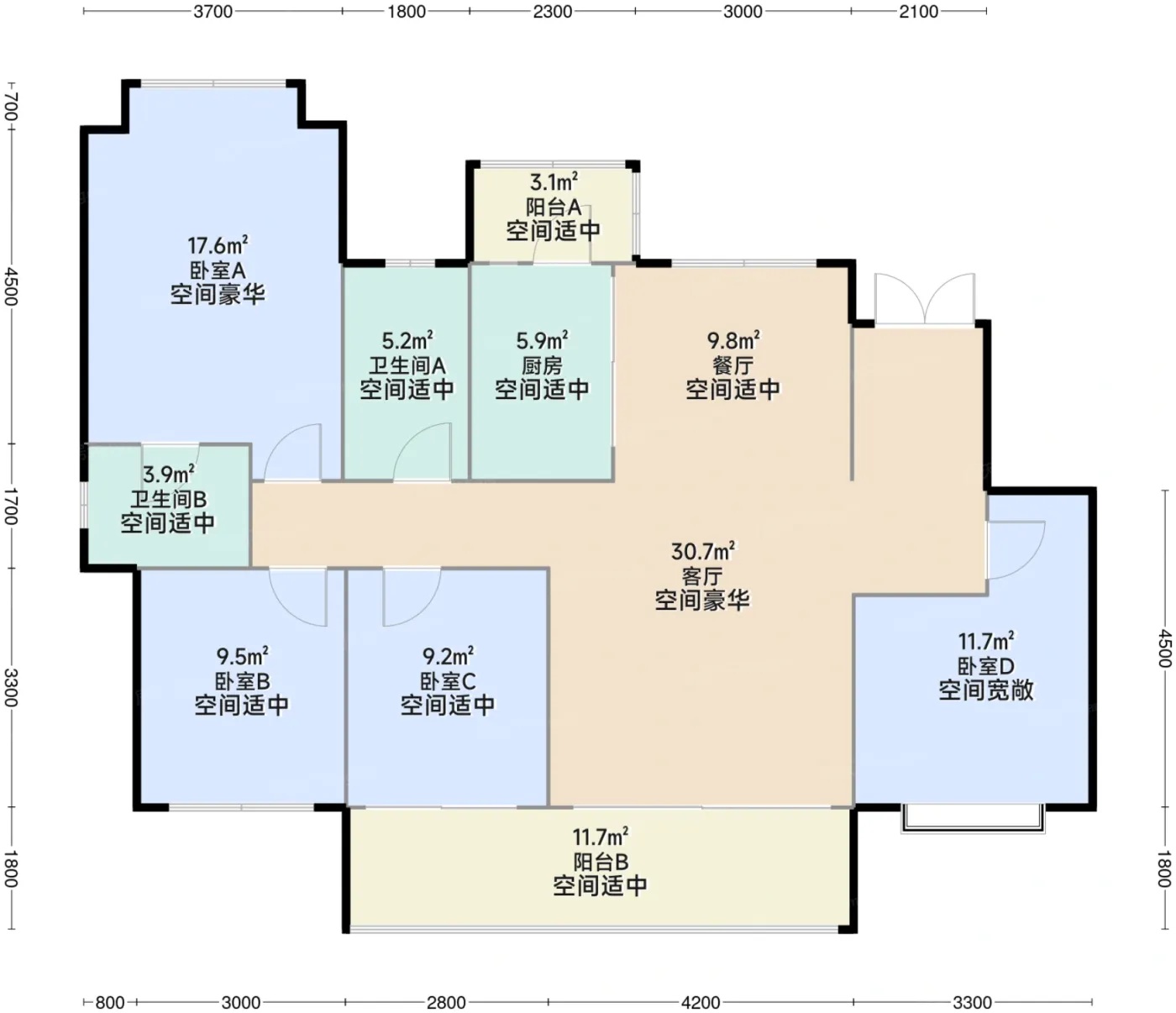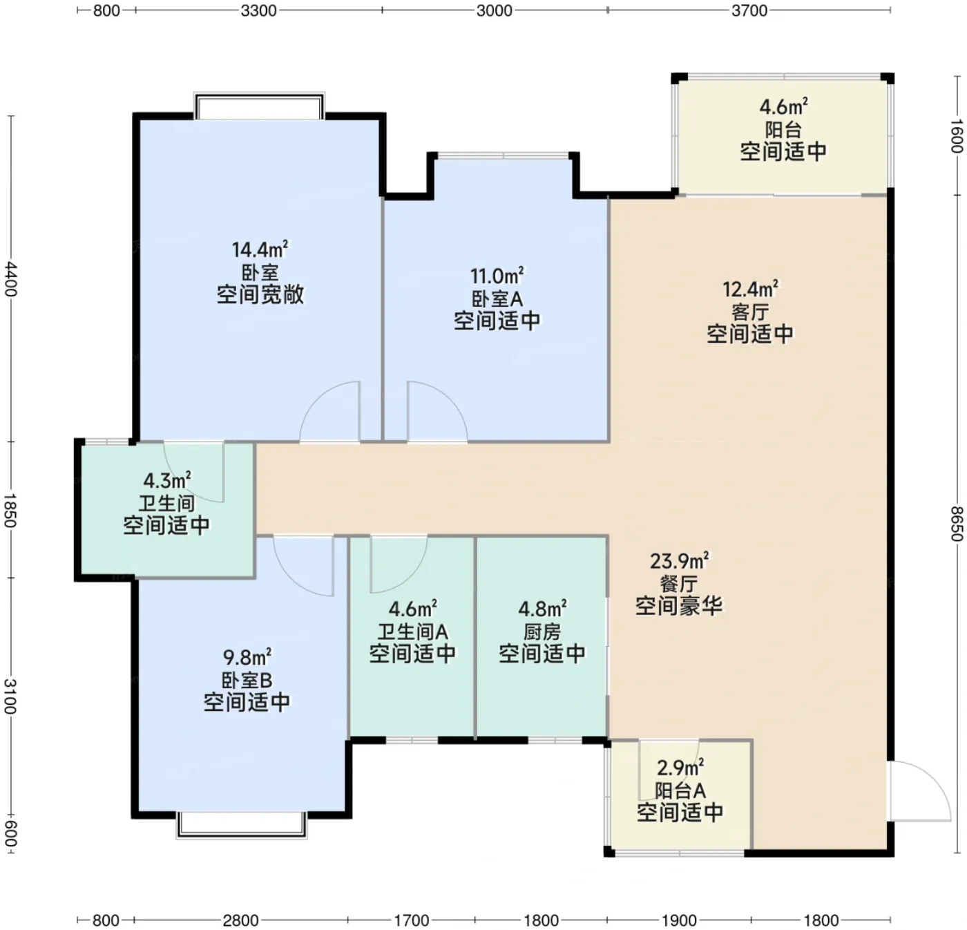 9.7分户型齐全,主打全明格局,户型方正四居。云锦安缦户型主要有117.0平-183.0平的全明格局,户型方正的四居和89.0平-116.0平的全明格局,户型方正的三居