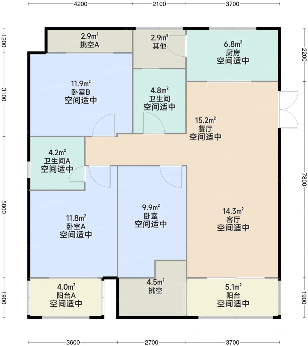 9.7分户型齐全,主打三居。上海阳台.怀安户型主要有95.0平-264.0平的三居