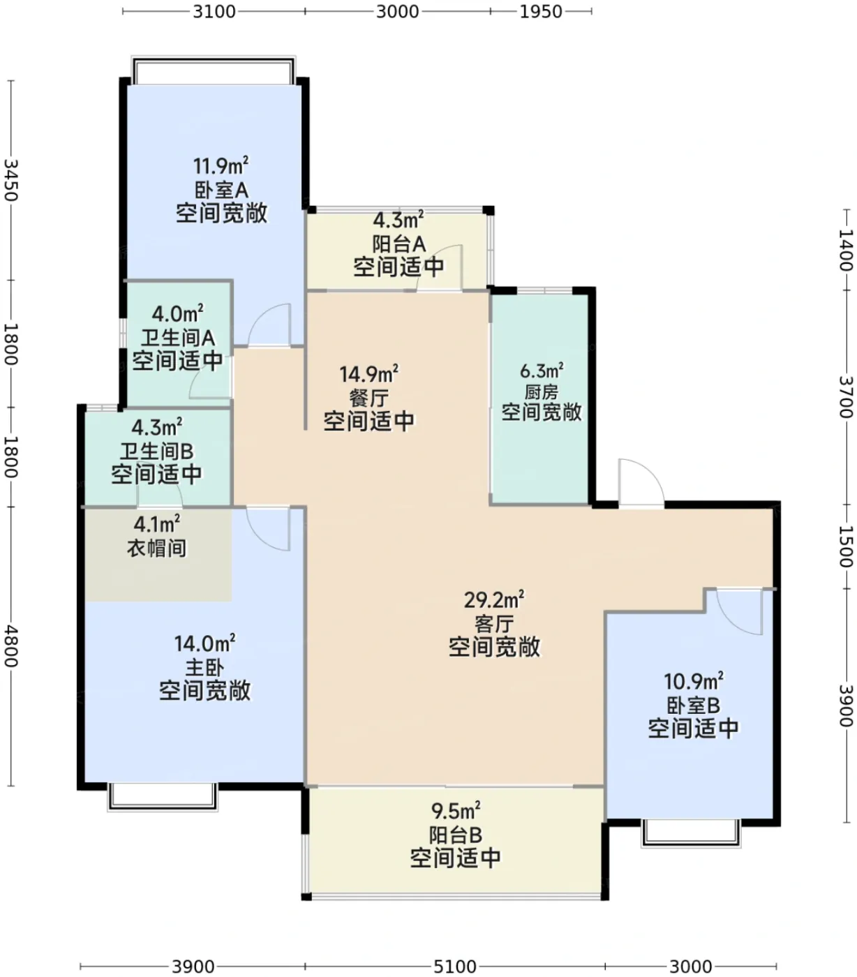 9.5分户型齐全,主打南北通透,全明格局,采光充足四居。山河赋户型主要有142.0平-229.0平的南北通透,全明格局,采光充足的四居和120.0平-176.0平的南北通透,户型方正,采光充足的三居