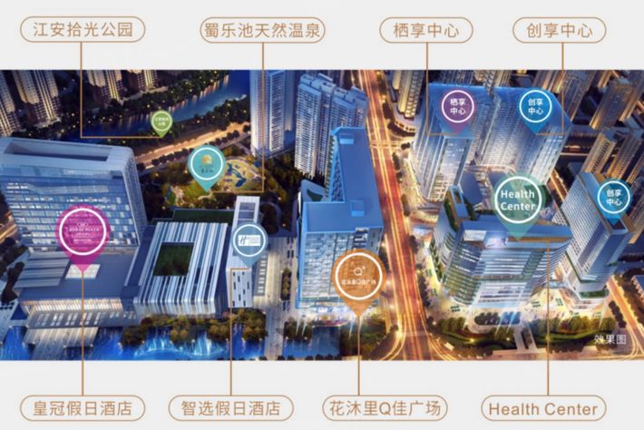 花沐里温泉大健康城-栖享中心楼盘位于成都温江凤凰北大街619号皇冠假日酒店旁,由成都千禧众仁房地产有限公司精心打造,项目当前已经售完,最新参考价格为7500元/平方米