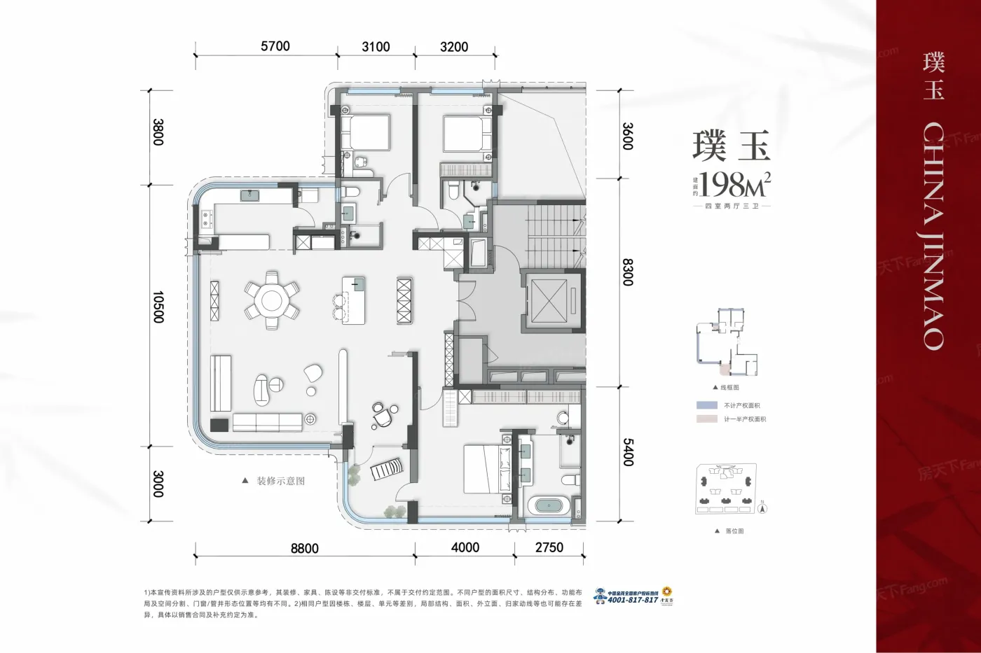 9.5分户型齐全,主打南北通透,户型方正,主卧套间,开放厨房,独立餐厅,中西双厨,大面宽阳台,带露台四居。金茂璞逸锦江户型主要有198.0平-235.0平的南北通透,户型方正,主卧套间,开放厨房,独立餐厅,中西双厨,大面宽阳台,带露台的四居