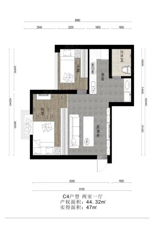 分户型齐全,主打一居。思学园智能村户型主要有28.0平-41.0平的一居和44.0平的二居