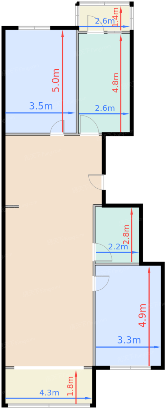 卧室B 13.3㎡ | 面宽3.3m | 进深4.9m