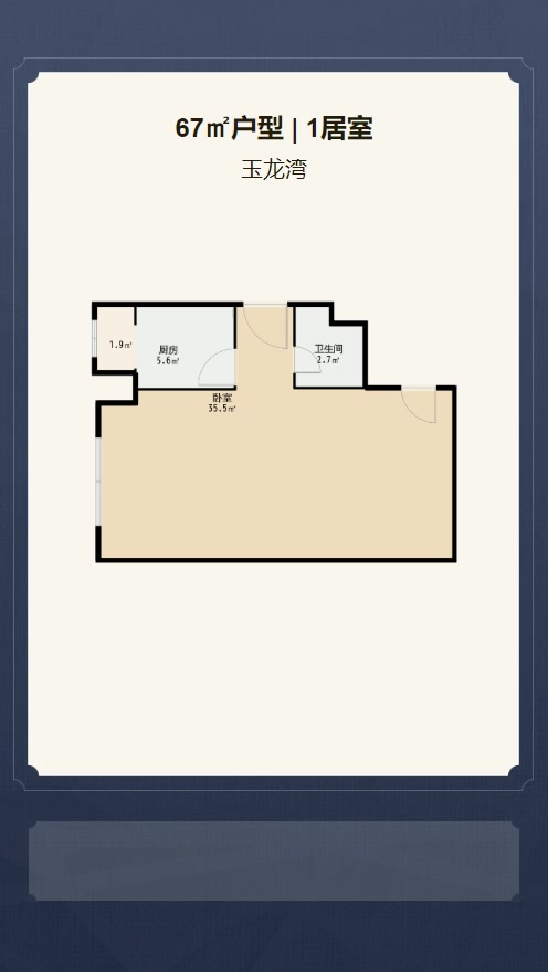 售完玉龙湾1居室户型图 | 建面:67㎡ | 朝向:朝西