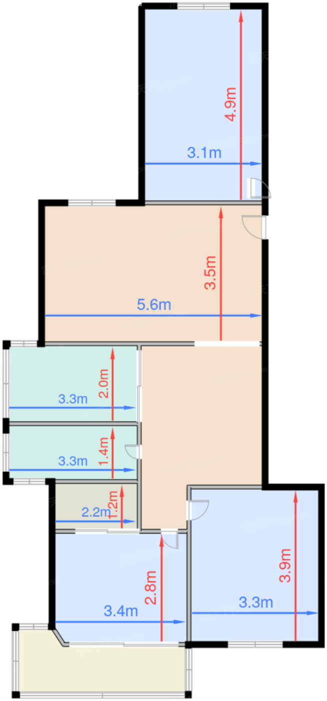 | 阳台 | 5.6 | 4.3 | 1.7 | 良好 |