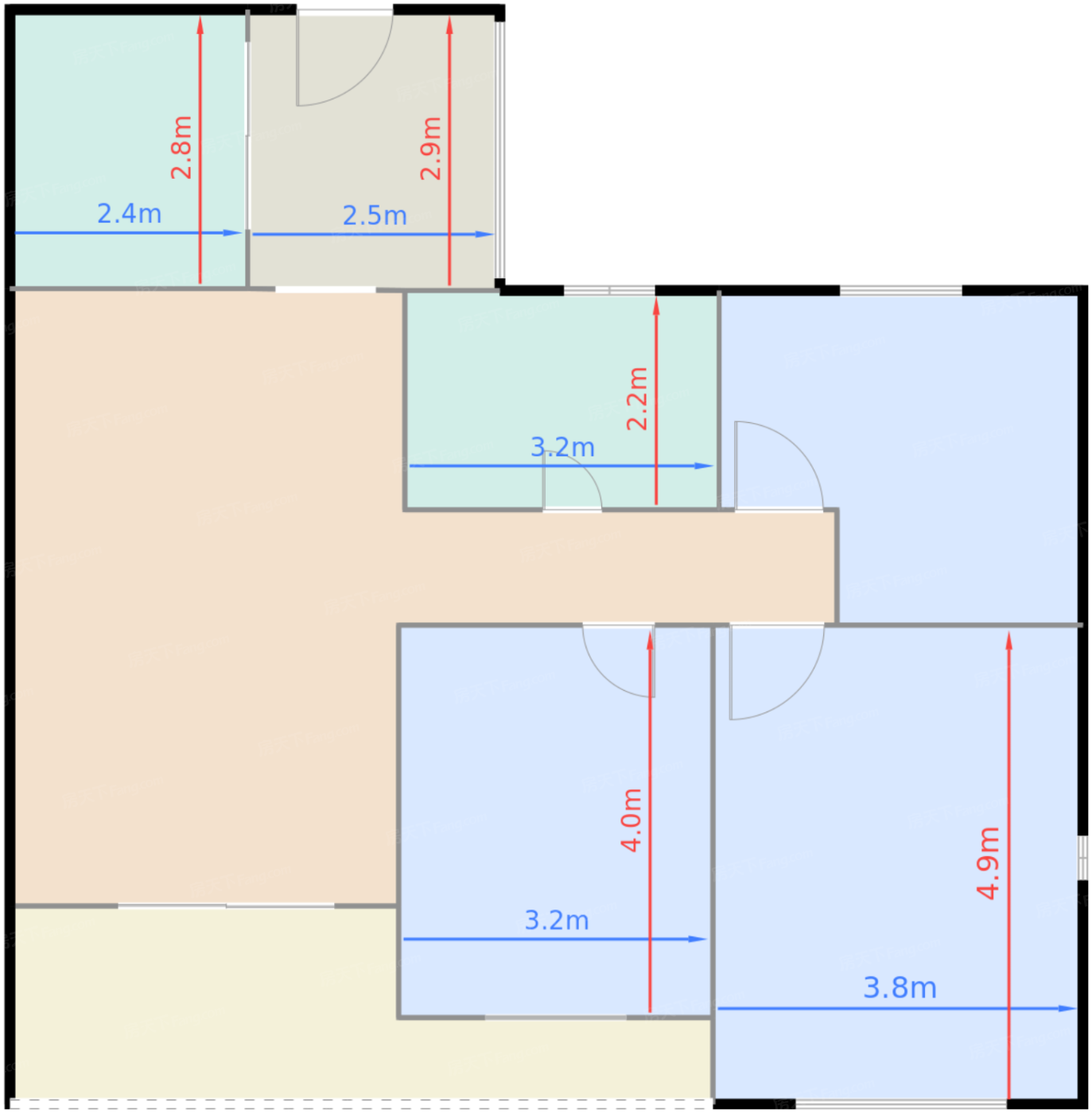 卧室B 15.9㎡ | 面宽3.8m | 进深4.9m
