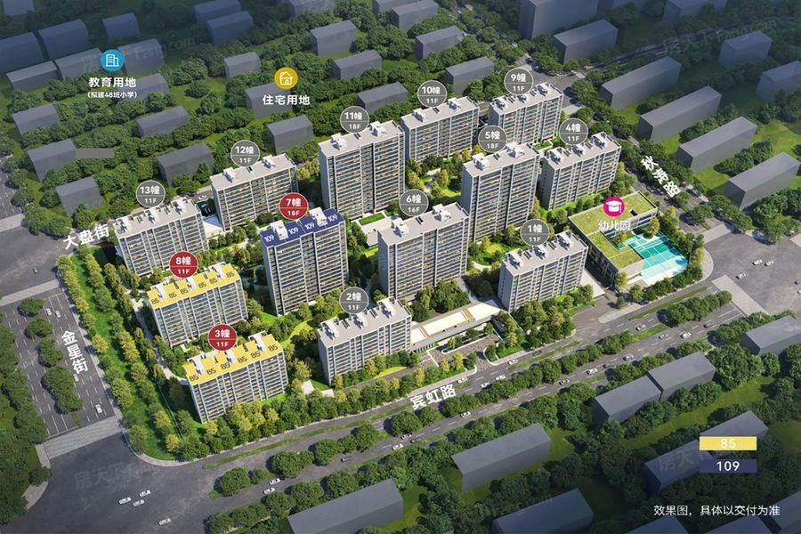 项目目前共有2个不同平米户型,面积在85-109㎡之间;容积率比较低,楼间距大,既能保证光照,又能保护隐私,不错
