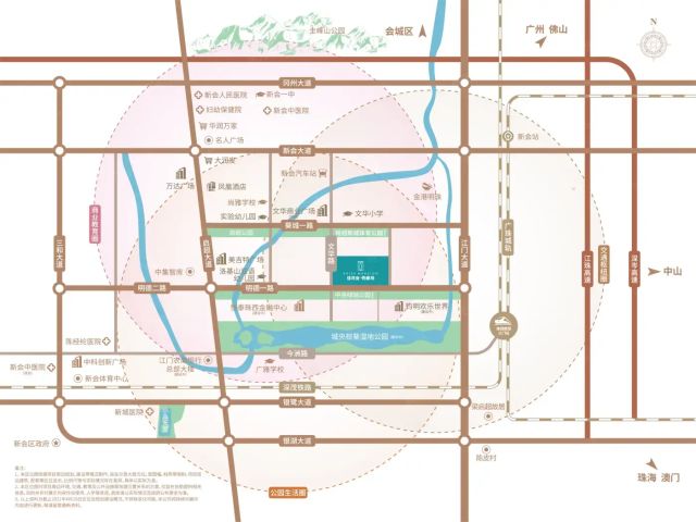 楼盘周边3km范围内有6个商场,包括新汇大融城、万达广场(江门新会店)等购物中心,商业配套成熟,完全可以满足日常购物需求。楼盘周边生态环境优越,周边3km范围内有28个公园,距离最近的仅592m,非常方便日常休闲使用。