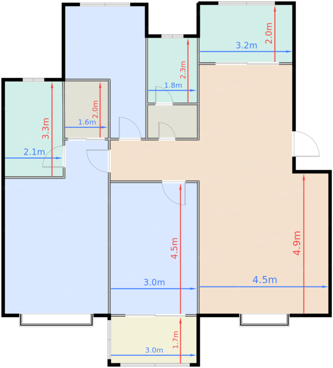 客厅 21.2㎡ | 面宽4.5m | 进深4.9m